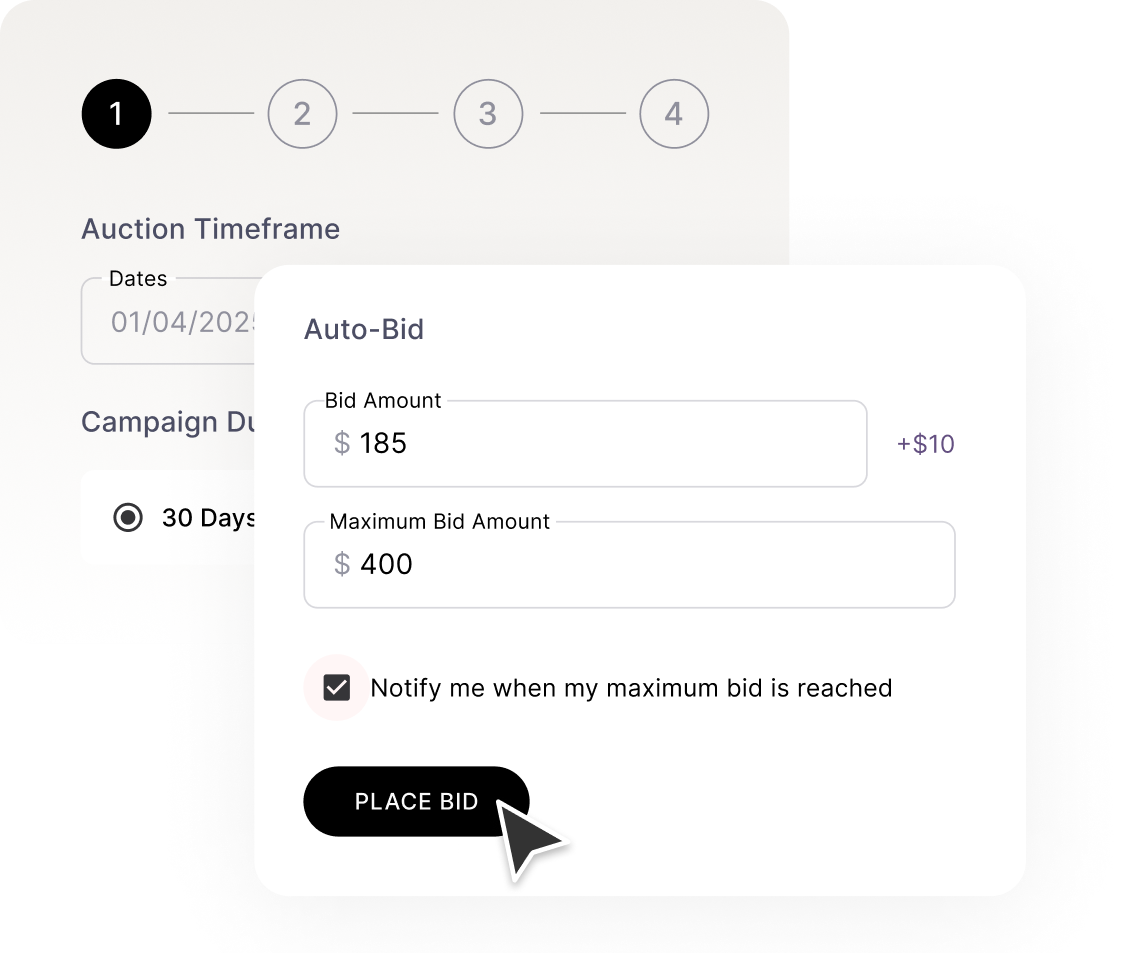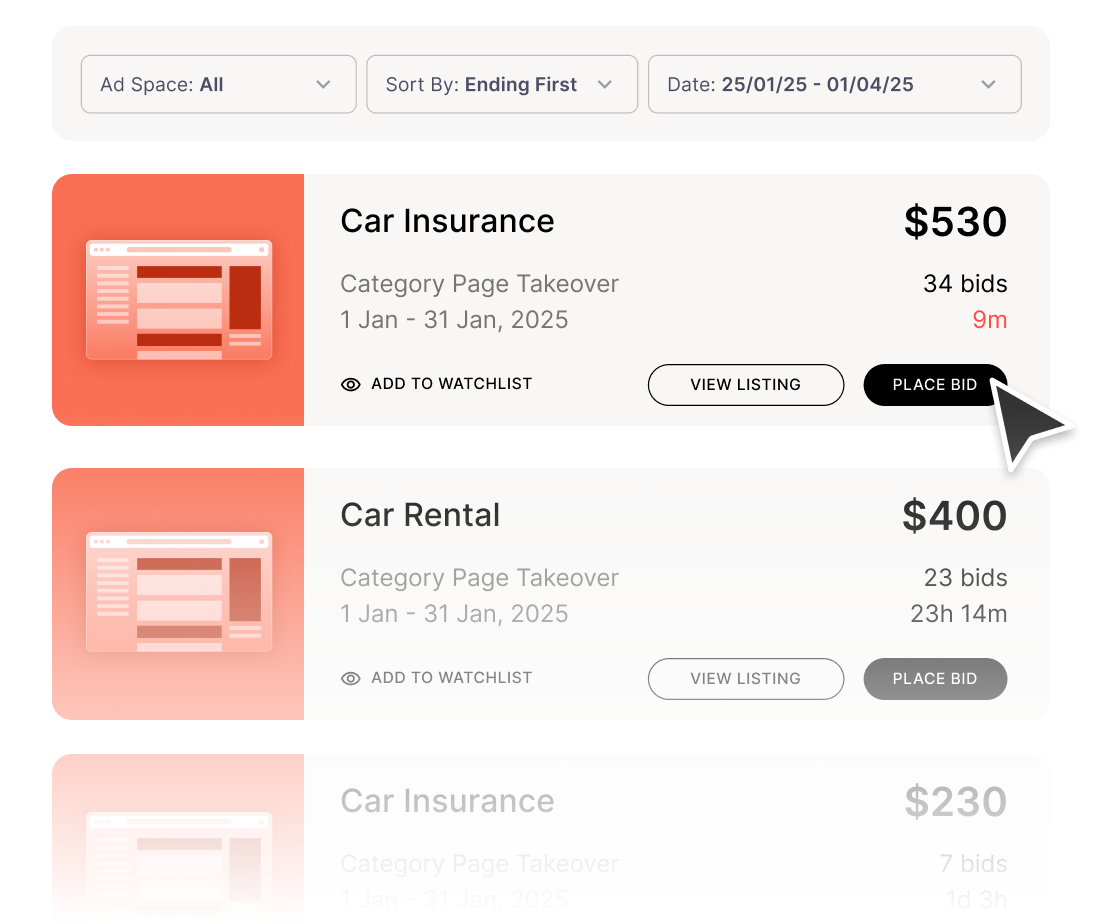 You will be automatically matched with suitable auctions based on your business categories. From here, you can filter for audiences aligned with your offer, or set alerts so you’re notified when matching auctions go live.
